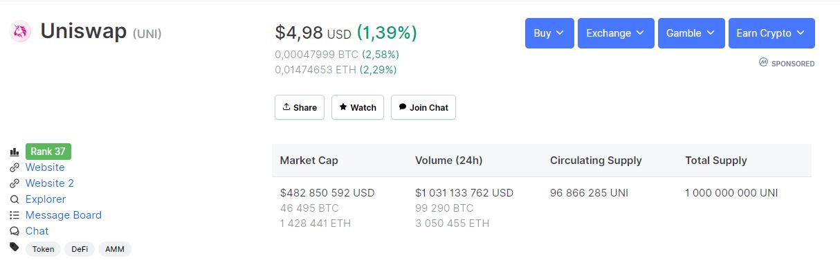 Быстрый листинг токена на крупных биржах, по его мнению, подтверждает высокий спрос, интерес к UNI и доверие криптосообщества к Uniswap, а также отражает веру инвесторов в перспективы развития Uniswap.