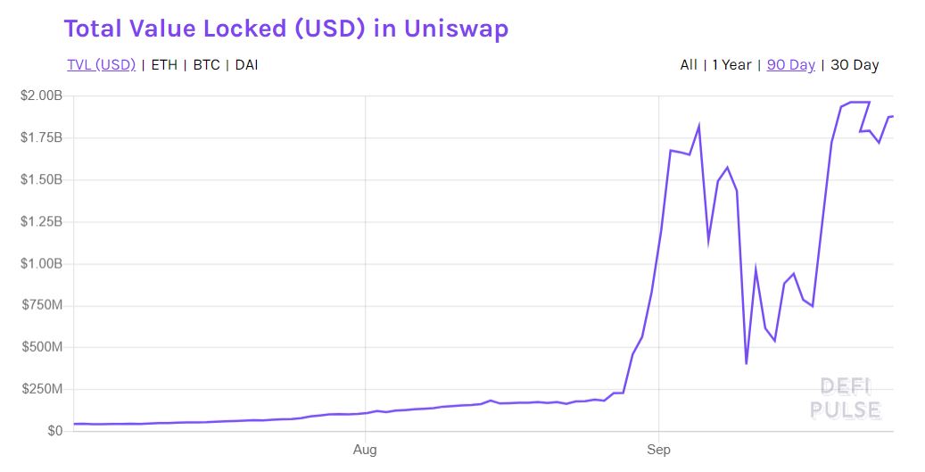 Следующим шагом в развитии борьбы между платформами, как отметил эксперт, стало создание управленческого токена сервиса Uniswap. Монету назвали UNI. Дмитрий Волков отметил, что в первые дни после создания токен вырос в цене в 2 раза.