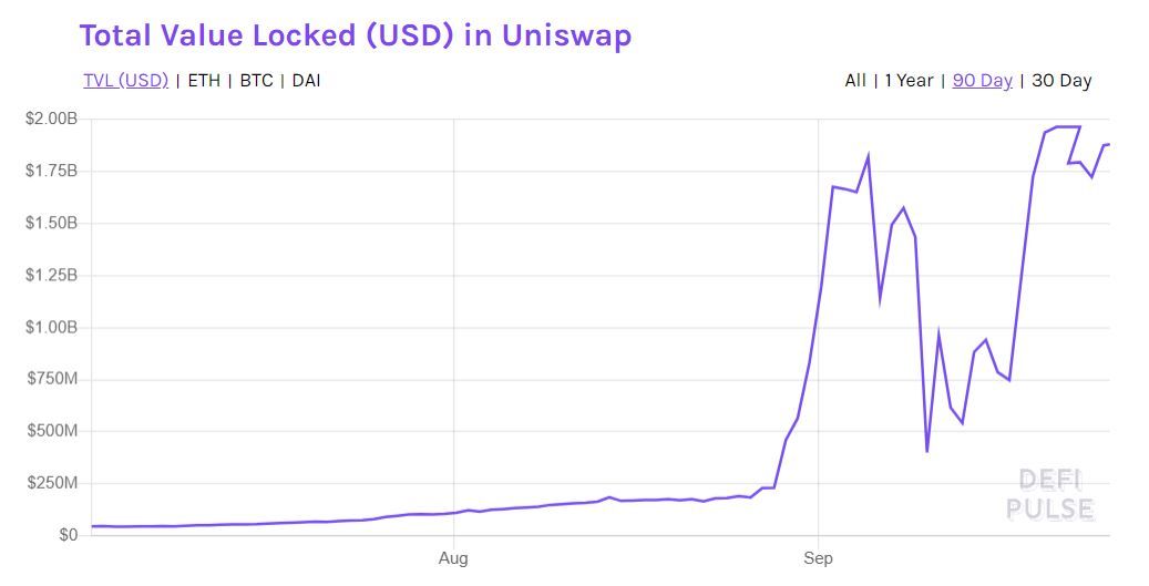 Также эксперт обратил внимание на то, что недавно у сервиса Uniswap появился конкурент – SushiSwap. Его команда создала аналогичную торговую платформу. Пользователям новой децентрализованной биржи предложили повышенные вознаграждения и некоторые новые функции. Важным отличием SushiSwap от Uniswap стало наличие собственного управленческого (governance) токена.