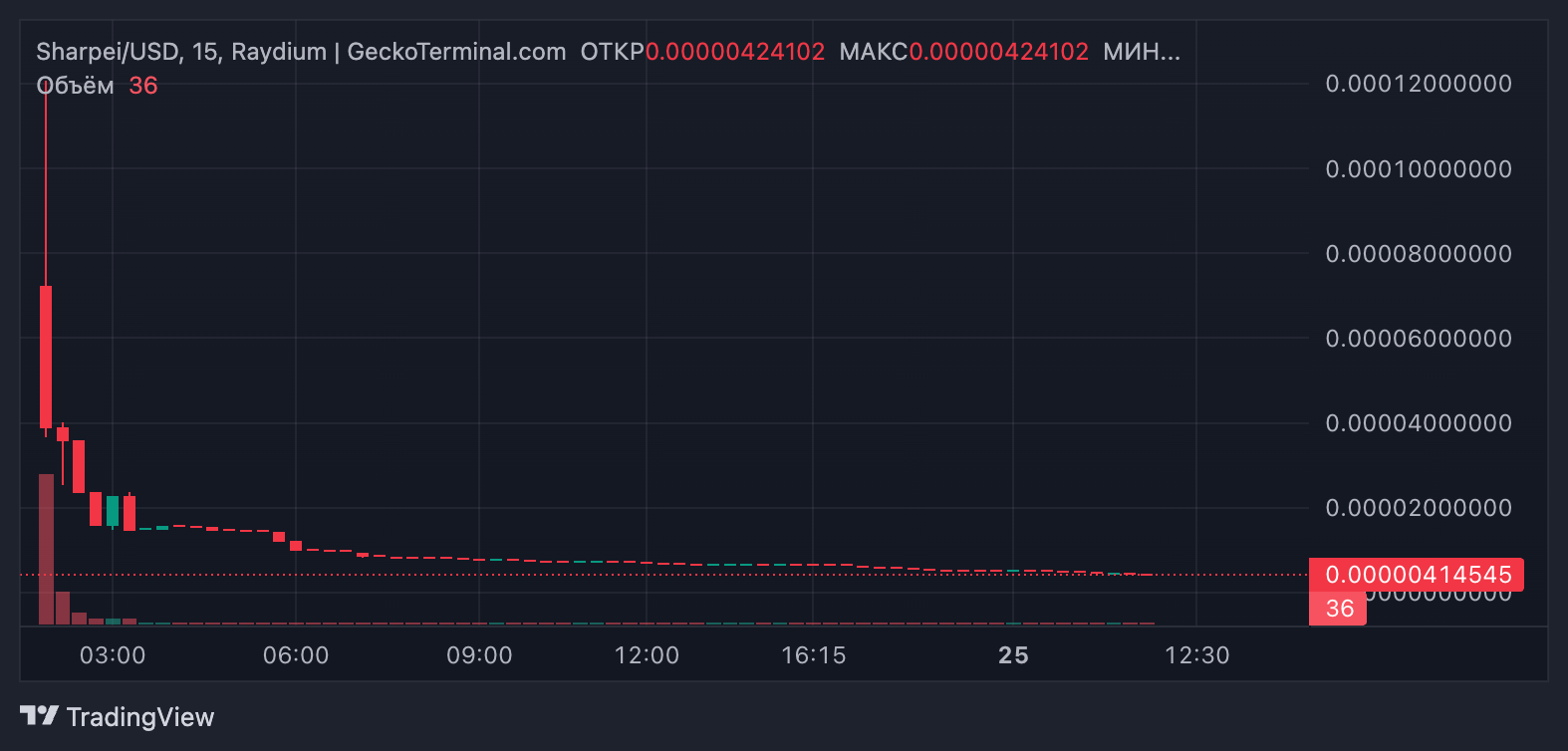На момент написания мемкоин торгуется по $0,054145. Капитализация актива составляет всего $4,2 тыс., согласно GeckoTerminal.