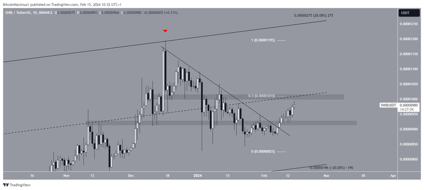 Более пристальный анализ дневного таймфрейма показывает, что 9 февраля SHIB прорвал нисходящую линию сопротивления. Это послужило катализатором роста.