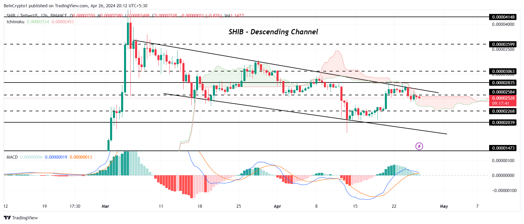 Однако отскок от уровня поддержки $0,00002268 поможет мемкоину восстановиться. Пробитие верхней границы канала и закрепление выше нее сделают медвежий тезис недействительным, направив SHIB к отметке $0,00002835.
