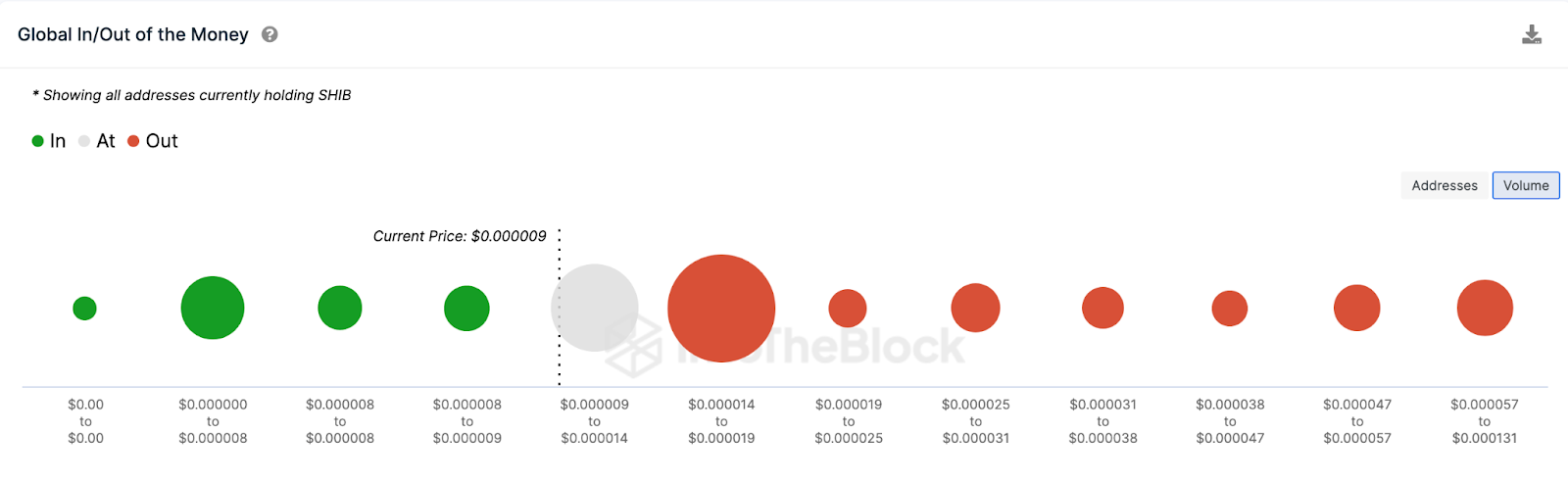 Как показано ниже, 318 950 адресов, которые приобрели 243 трлн токенов по средней цене $0,000011, постараются помешать бычьему прорыву. Но если этот уровень сопротивления будет пройден, SHIB направится к отметке $0,000014.
