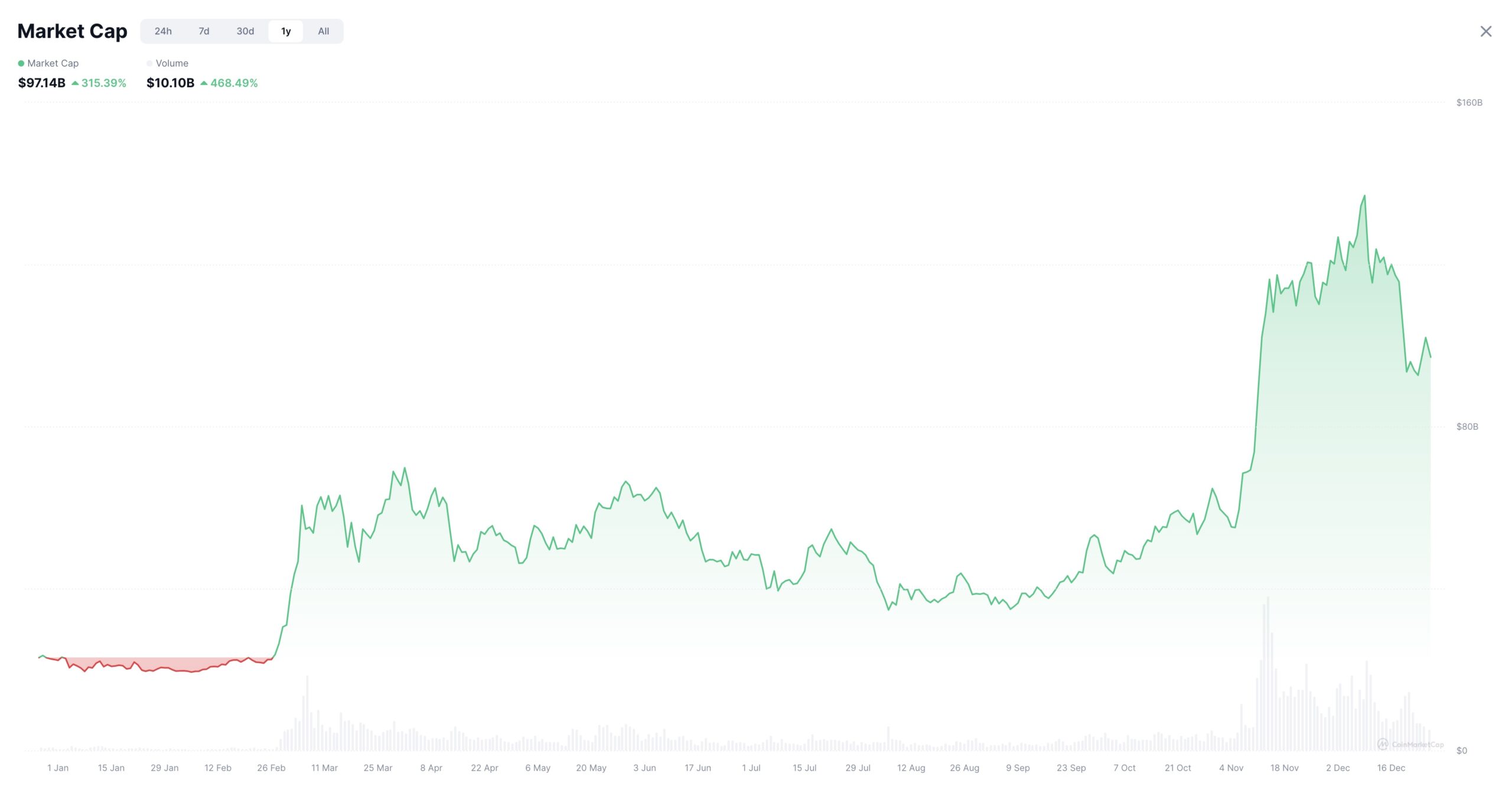 По данным CoinMarketCap, на момент публикации на рынке существует более 3 500 мемкоинов, а их совокупная капитализация приближается к $1 трлн. За год она выросла более чем на 300%.
