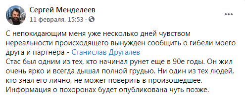 Одним из первых о кончине бизнесмена заявил бывший генеральный директор криптовалютной биржи Garantex на своей странице в Facebook.