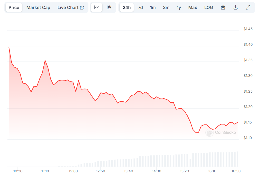 По данным CoinGecko, сейчас SCR торгуется по $1,15. Самым высоким уровнем с начала торгов была отметка $1,40, а самым низким — $1,12.