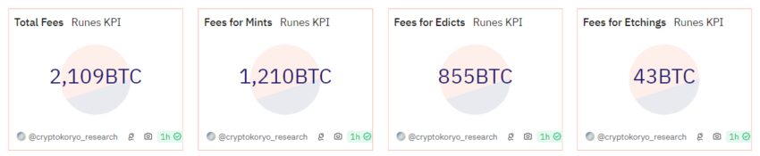 Однако всего за шесть дней на транзакциях с Rune майнеры заработали порядка 2 109 BTC, что оценивается в примерно $133 млн.