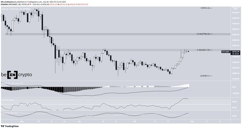 SponsoredБиткоин уже трижды безуспешно пытался совершить бычий прорыв области горизонтального сопротивления $40 500. Здесь также проходит уровень Фибо 0.382 коррекции.