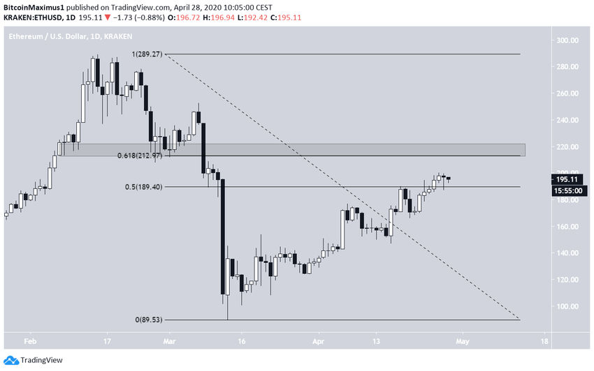 Ethereum восстанавливается от минимумов с 13 марта, и 25 апреля цена отыграла ровно половину недавнего обвала.
