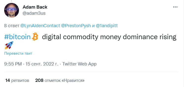 «Я теперь, на фоне миграции ETH на PoS, еще больше верю в потенциал роста биткоина. Существует четкая граница между PoW-биткоином и всеми остальными [проектами] на PoS. Эту разницу будет сложно игнорировать на фоне ожесточения битвы между гиперпотреблением и участниками сети, которым платят ложью», — написал Престон Пыш, намекая на то, что PoW, по его мнению, эффективнее и справедливее PoS.