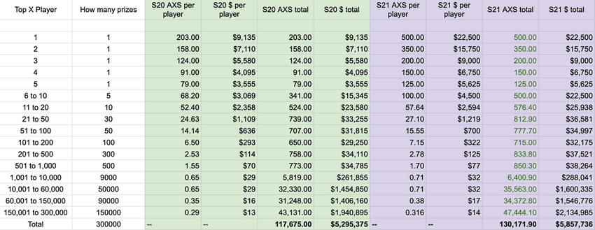 Игровое сообщество Axie Infinity осталось не в восторге от нового сезона раздачи почти 131 000 токенов AXS на общую сумму свыше $5,8 млн. Об этом пишут исследователи площадки DappRadar. Сообщается, что бонусы будут распределены в зависимости от ранга игроков.