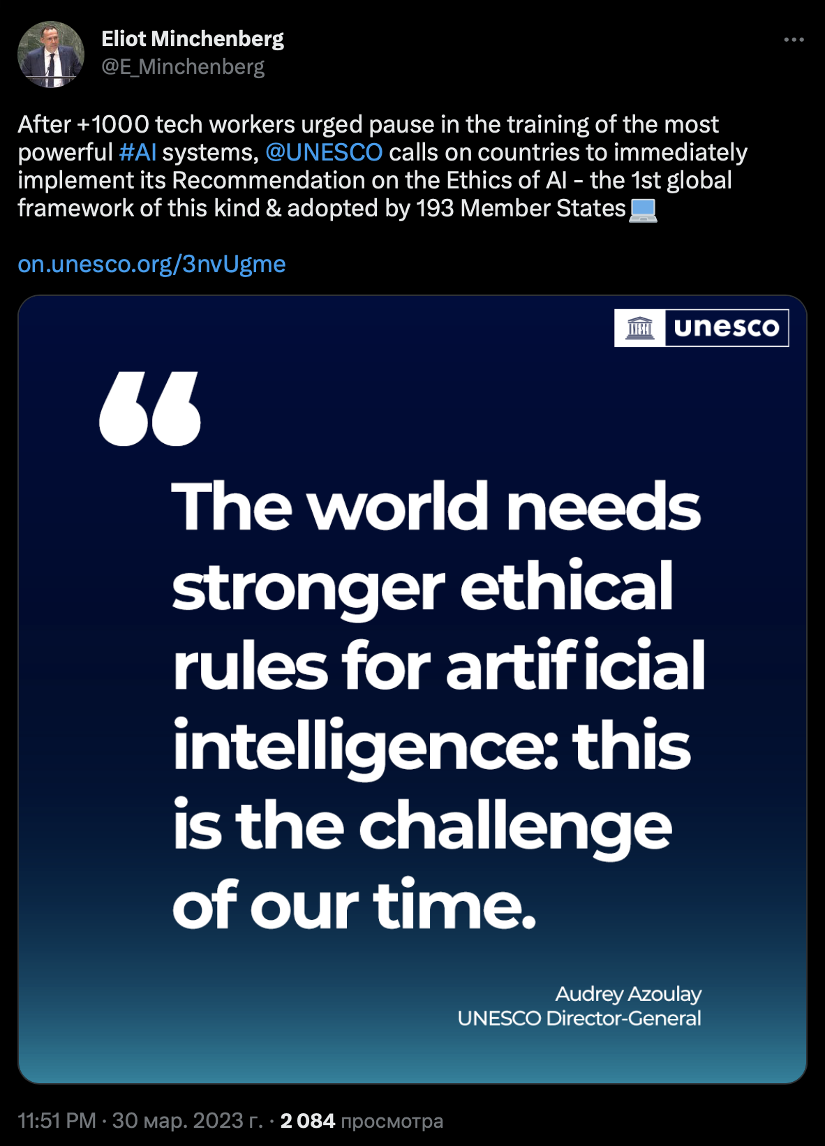 «Мир нуждается в более строгих этических правилах для искусственного интеллекта. Это вызов нашего времени», – комментирует Генеральный директор ЮНЕСКО Одри Азулай.