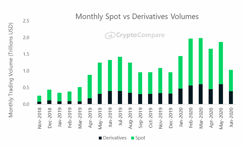 После одних из лучших результатов в мае, торговля криптовалютами резко упала в июне. Цены на цифровые активы стабилизировались в прошлом месяце, на фоне чего торговые обороты на спотовом рынке сократились более чем на 50%. Криптовалютные деривативы чувствовали себя не лучше, обновив минимумы 2020 года.