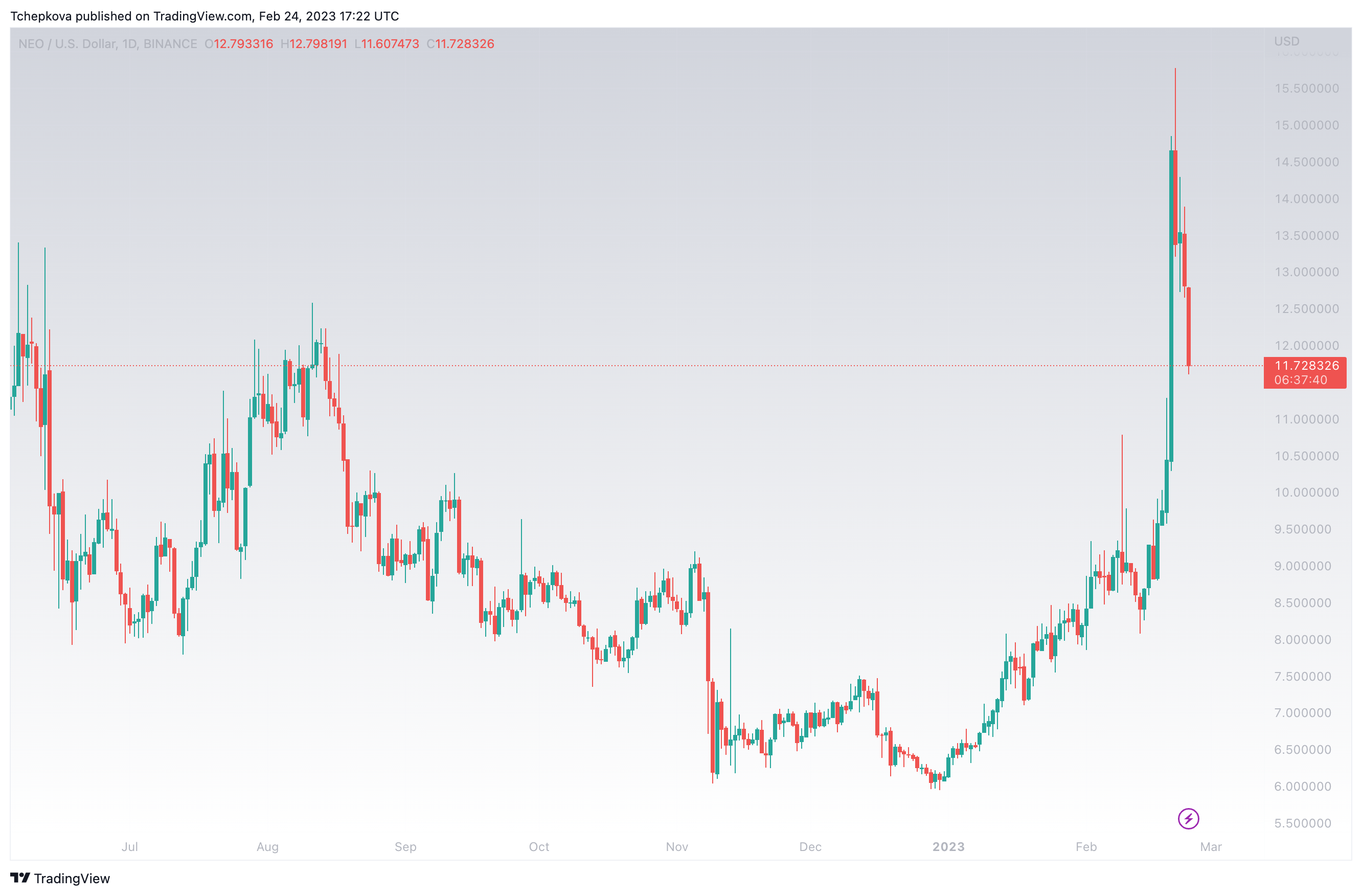Ключевая поддержка находится на уровне $11. Текущий курс NEO — $11,72