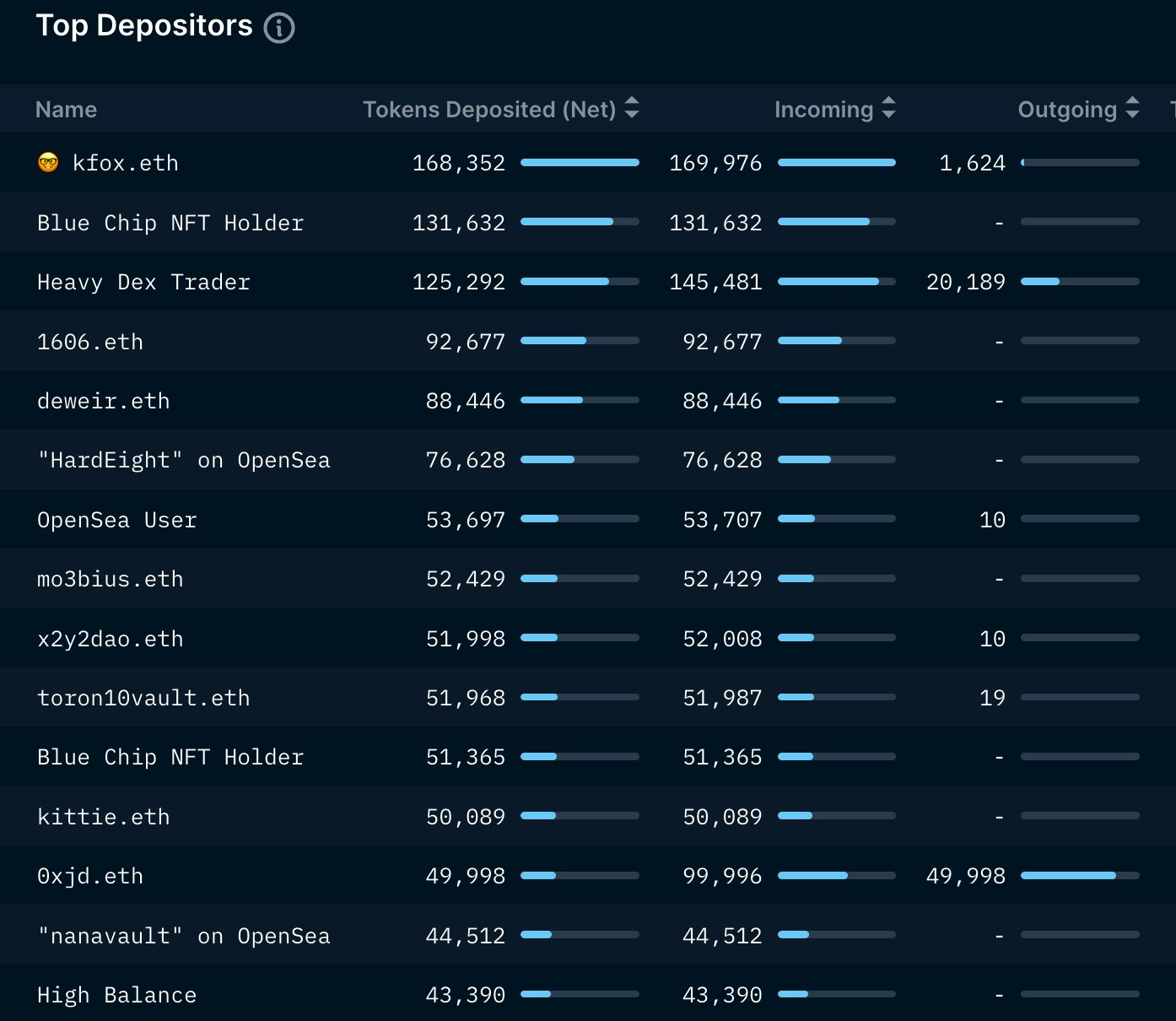 SponsoredПо данным Nansen, на данный момент в контракте заблокировано около 4,28 млн APE на сумму $16 млн. На трех крупнейших стейкеров приходятся 169 679, 131 632 и 76 628 APE.