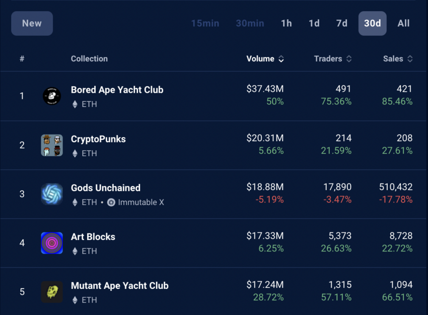 Цена APE росла с середины ноября в преддверии запуска стейкинга: c момента достижения локального дна токен подорожал более чем на 50%. Кроме этого, во всей экосистеме Bored Ape наблюдался всплеск продаж NFT.