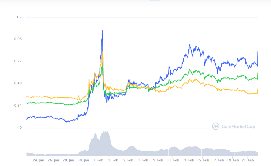При этом, руководство Ripple продолжает сливать монеты, ограничивая дальнейший рост монеты. В прошлую среду, 17 февраля, на криптовалютные биржи поступило по меньшей мере 20 млн монет от исполнительного директора Ripple Криса Ларсена. Это около 10 млн долларов.