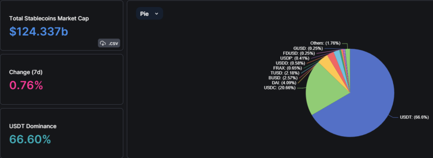 SponsoredTether остается доминирующей в отрасли стабильной монетой. На данный момент в обращении находятся 83 млрд USDT, а доля рынка стейблкоина составляет почти 67%.