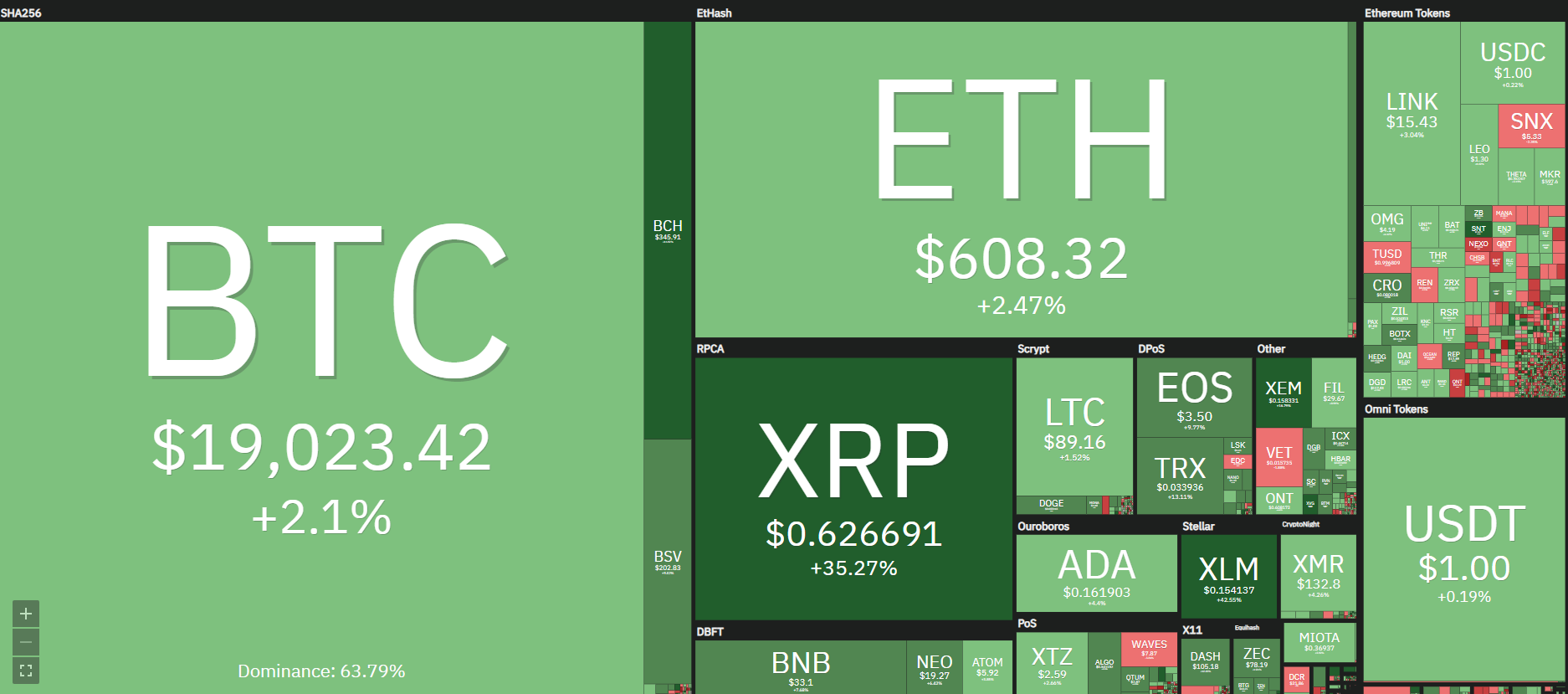 Крупнейшая по капитализации криптовалюта преодолела уровень в $19 000, который неоднократно пыталась взять на протяжении последней недели