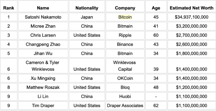 На фоне роста биткоина усиливается инетерес к криптовалюте со стороны розничных и инвестиционных инвесторов. На начало 2021 года крупнейшим держателем биткоин остается его анонимный создатель Сатоши Накамото. На втором и третьем месте месте соответственно основатель производителя майнигового оборудования и сооснователь компании Ripple.