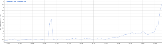 Растущая популярность протоколов для децентрализованных финансов, развернутых на платформе Ethereum, способствовали резкому росту стоимости комиссий и газа. В четверг, 13 августа, блокчейн обработал рекордное количество транзакций в $6,87 млн.