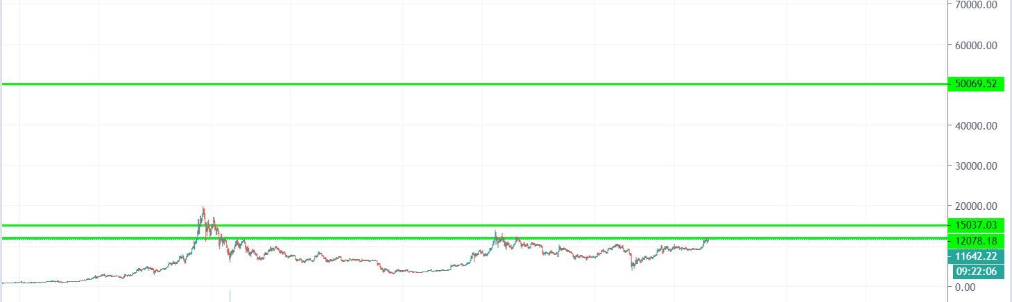 По его мнению, ближайшая цель для биткоина — закрепиться выше $12 тыс. Если это произойдет, как считает Николай Кленов, вполне возможен рост до $15+ тыс.