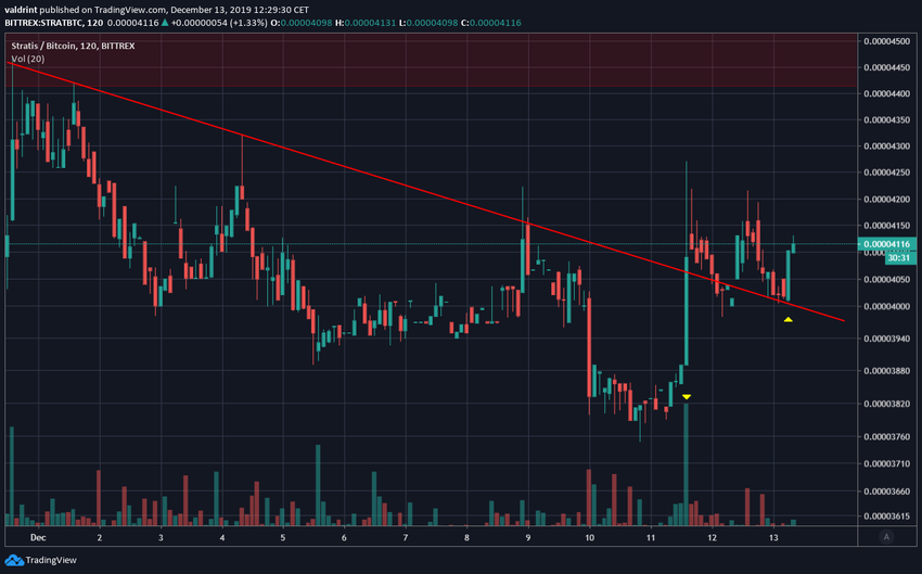 11 декабря курс Stratis совершил бычий прорыв линии нисходящего сопротивления, которое поддерживалось на графике с начала декабря.