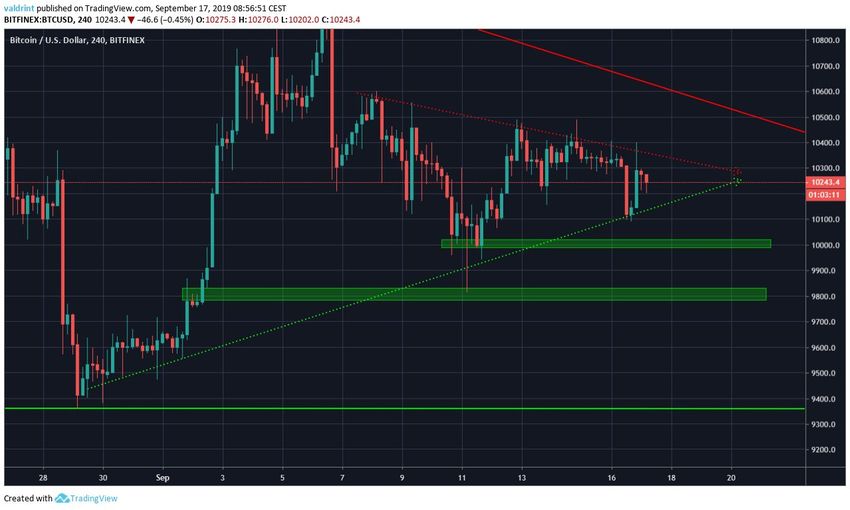 Скорее, BTC достигнет уровня $9800 и затем нацелится на горизонтальную поддержку $9400.