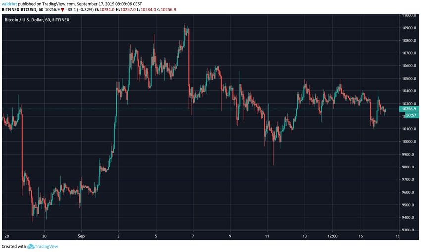 29 августа курс биткоина коснулся отметки $9511, откуда последовал подъем, и 7 сентября токен отметился на максимуме $10,933. С тех пор BTC снижается.