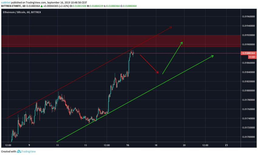 Скорее, покупать Ethereum будет интереснее вблизи отметки ₿0.0182.