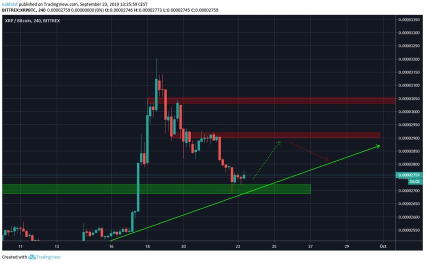 Давая гипотетические рекомендации относительно оптимальной торговой стратегии, мы бы рассмотрели вариант с покупкой XRP на текущих уровнях в районе 2700 сатоши.