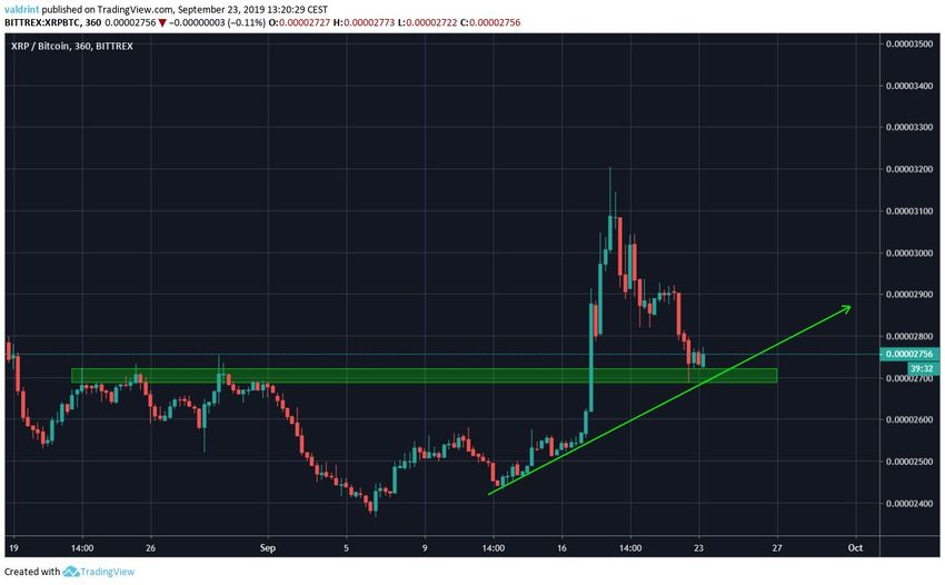 - XRP/BTC движется вдоль линии восходящей поддержки.