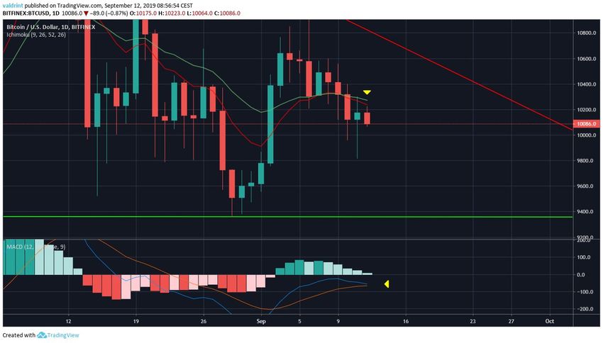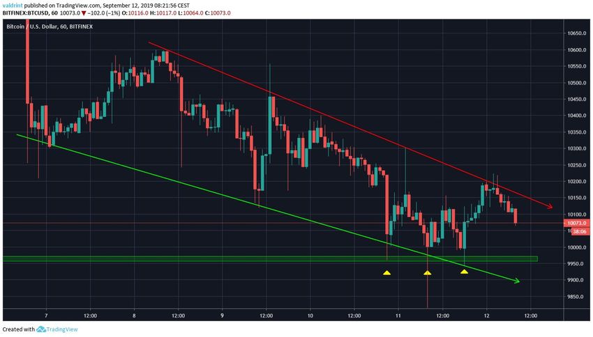 Ценовая динамика от 11 сентября демонстрирует, что поддержка расположена в области $9950.
