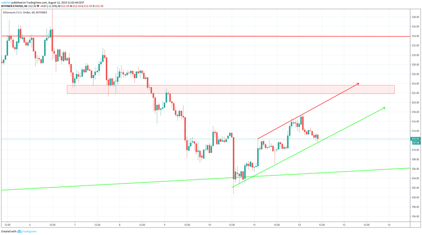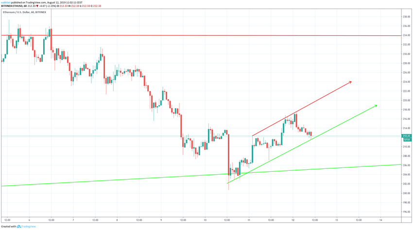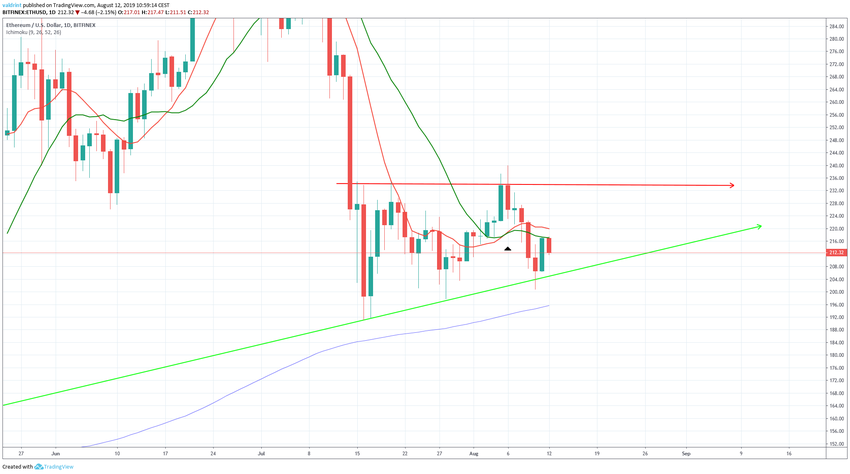 30 июля 2019 года курс Ethereum отметил минимум на $203, откуда вскоре начал развивать рост. 6 августа цена достигла максимума на $231, после чего начала снижение, которое продолжается до сих пор.