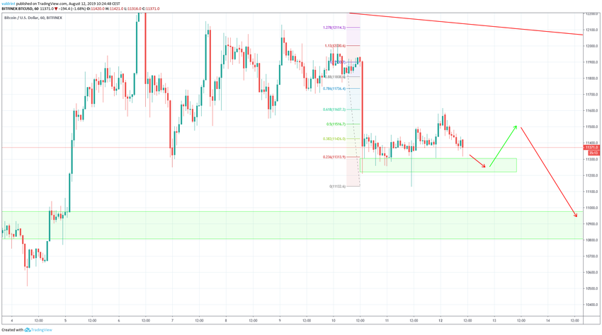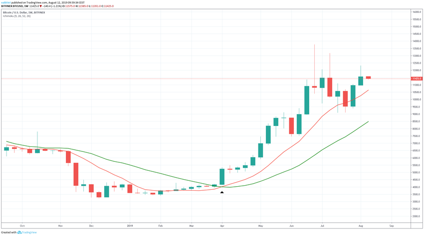 Курс биткоина достиг максимума 6 августа на уровне $12 325. Затем последовало снижение. В тот же день цена протестировала отметку $11 249. После вялых попыток роста 11 августа биткоин снова обвалился к $11 129.