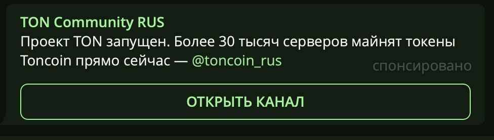 В прошедшие выходные в крупных Telegram-каналах стали появляться официальные рекламные посты. При этом минимальный бюджет за 1000 показов составляет €2 млн (половина тратится сразу на рекламу, а вторая половина списывается, если не достигается порог минимальных трат в размере €10 млн).