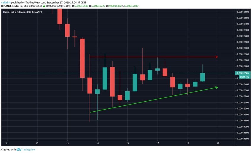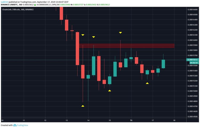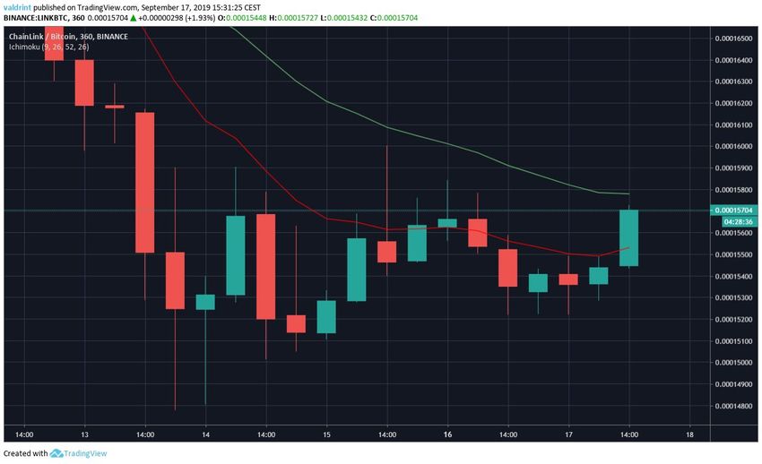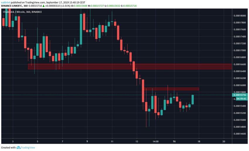 - LINK/BTC торгуется внутри важной зоны поддержки 15 000 сатоши.
