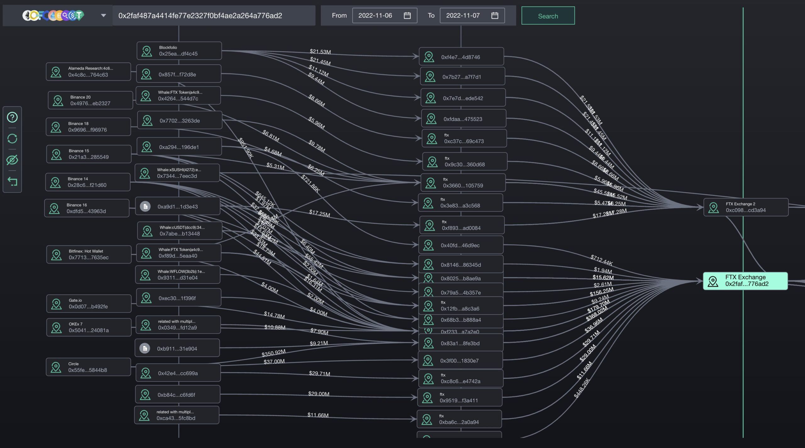 Также Коллин Ву поделился ссылкой на свое расследование. Он отметил, что на фоне конфликта с Binance криптобиржа FTX и Alameda получила активы на $177 млн с идентифицированного кошелька Circle. Alameda, в свою очередь, перевела часть средств FTX.