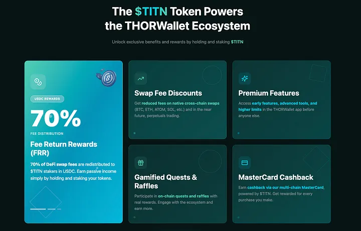 Помимо торговли, TITN станет рабочим токеном в экосистеме THORWallet и обеспечит: