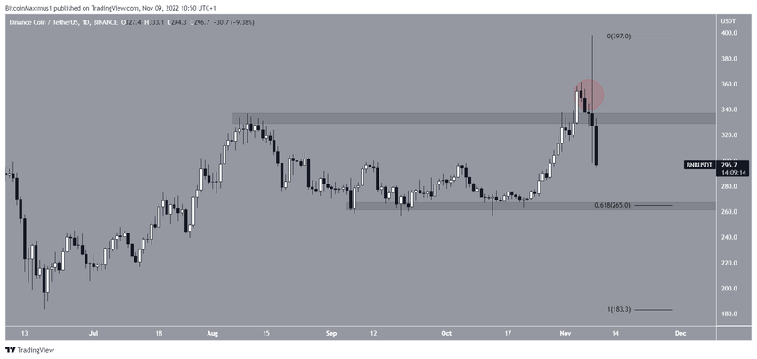 Курс Binance Coin (BNB) пробил область поддержки $300, а токен биржи FTX (FTT) торгуется вблизи минимумов 2021 года