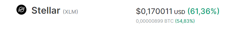 На фоне объявления об успешном обновлении цена токена XLM внезапно перешла в бычий тренд. Всего за сутки актив в торговой паре XLM/USDT успел вырасти более чем на 60%. В моменте валюта тестировала область выше $0.18. На момент написания статьи Stellar торгуется на отметке $0,17.
