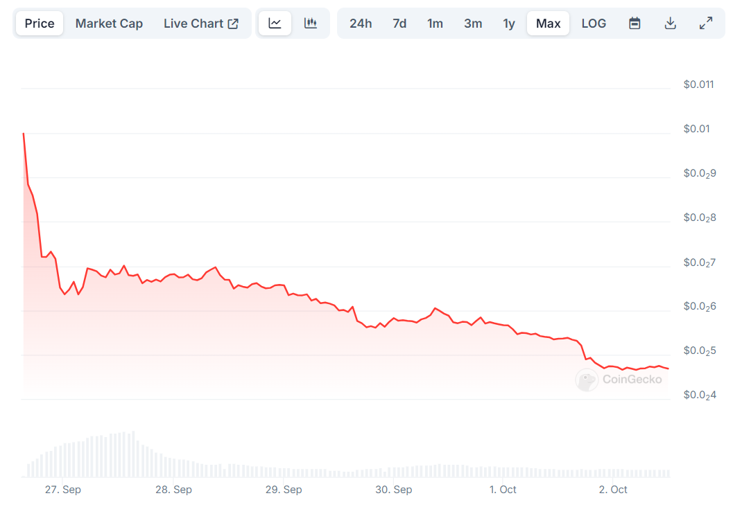 Что еще хуже — спустя пять дней после запуска цена монеты Hamster Kombat обвалилась более чем на 50%. По данным CoinGecko, на момент написания материала HMSTR торгуется по $0,004697. В первый день начала торгов актив стоил $0,01.