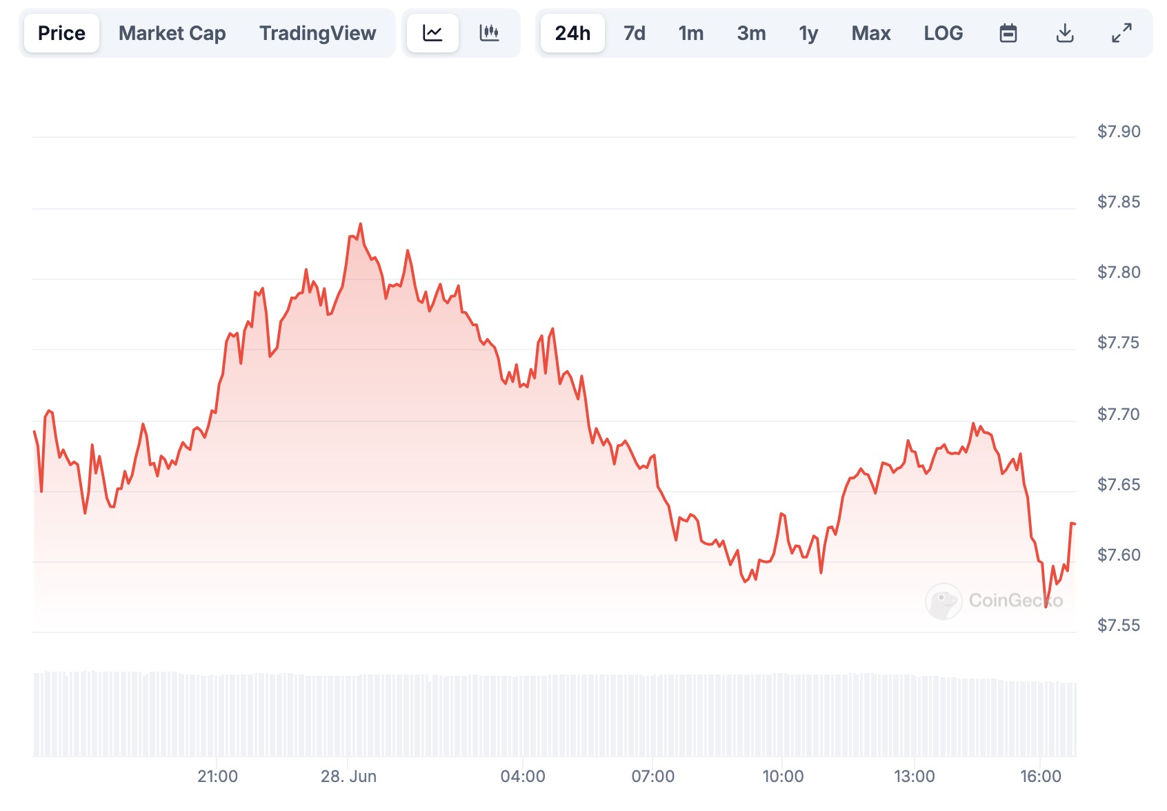 На момент написания материала TON торгуется по $7,63. По данным CoinGecko, за последние сутки стоимость актива снизилась на 0,6%. Капитализация Toncoin сейчас составляет $18,7 млрд. По этому показателю токен занимает девятое место в рейтинге крупнейших криптовалют.