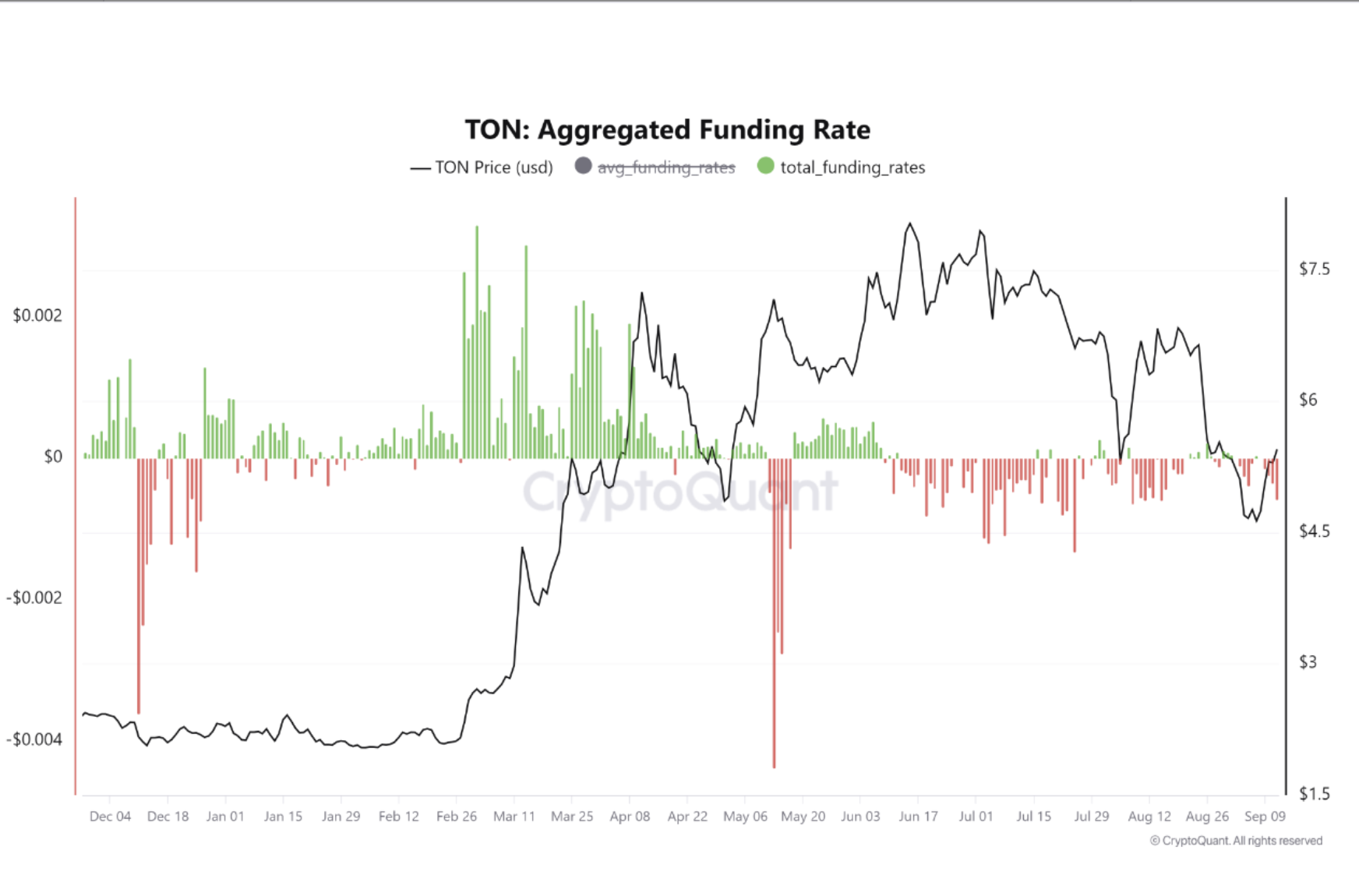 В новом отчете аналитик CryptoQuant Жоао Ведсон (Joao Wedson) пишет, что комбинация двух факторов — отрицательной ставки финансирования и положительной 30-дневной дельты открытого интереса — намекает на то, что в скором времени Toncoin рискует столкнуться с шорт-сквизом.