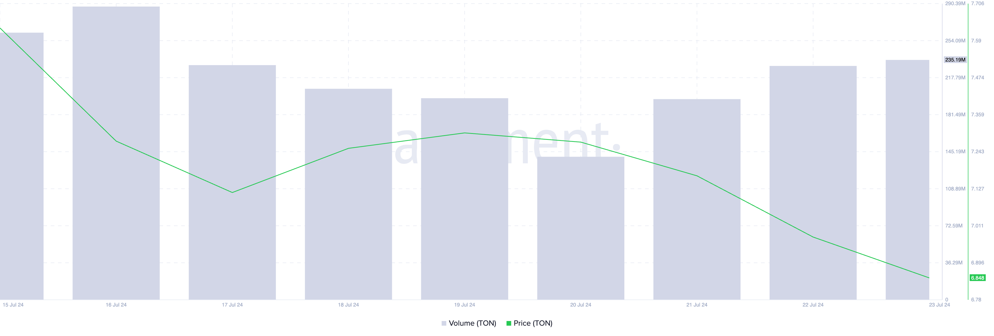 Если нисходящий тренд продолжится, Toncoin может упасть до месячного минимума в $6,35.