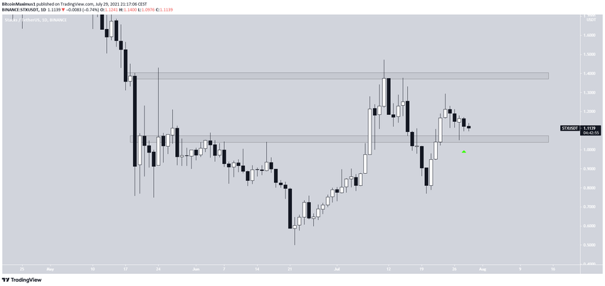 Стоимость STACK растет с 22 июня. Цена сформировала повышающийся максимум 20 июля.