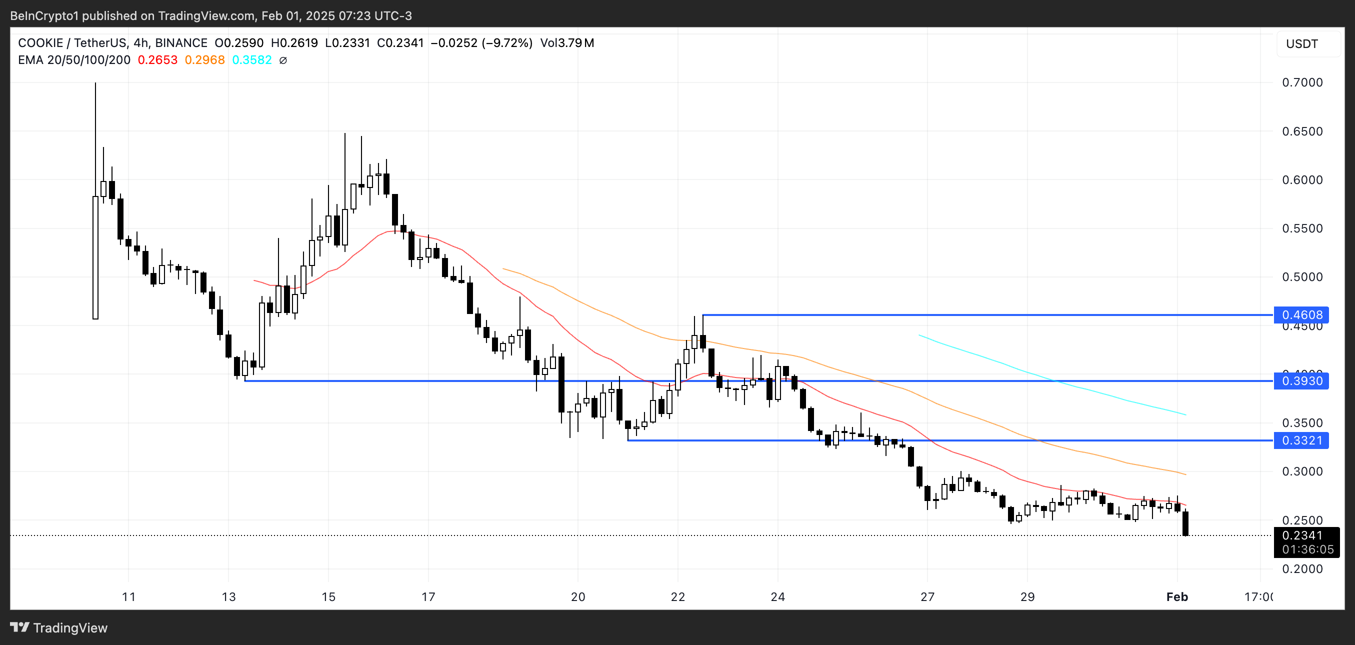 Если COOKIE сможет развернуть нисходящий тренд, цена вернется к области сопротивления на $0,33 и $0,39. Прорыв выше подтолкнет его к максимуму с 22 января на уровне $0,46.
