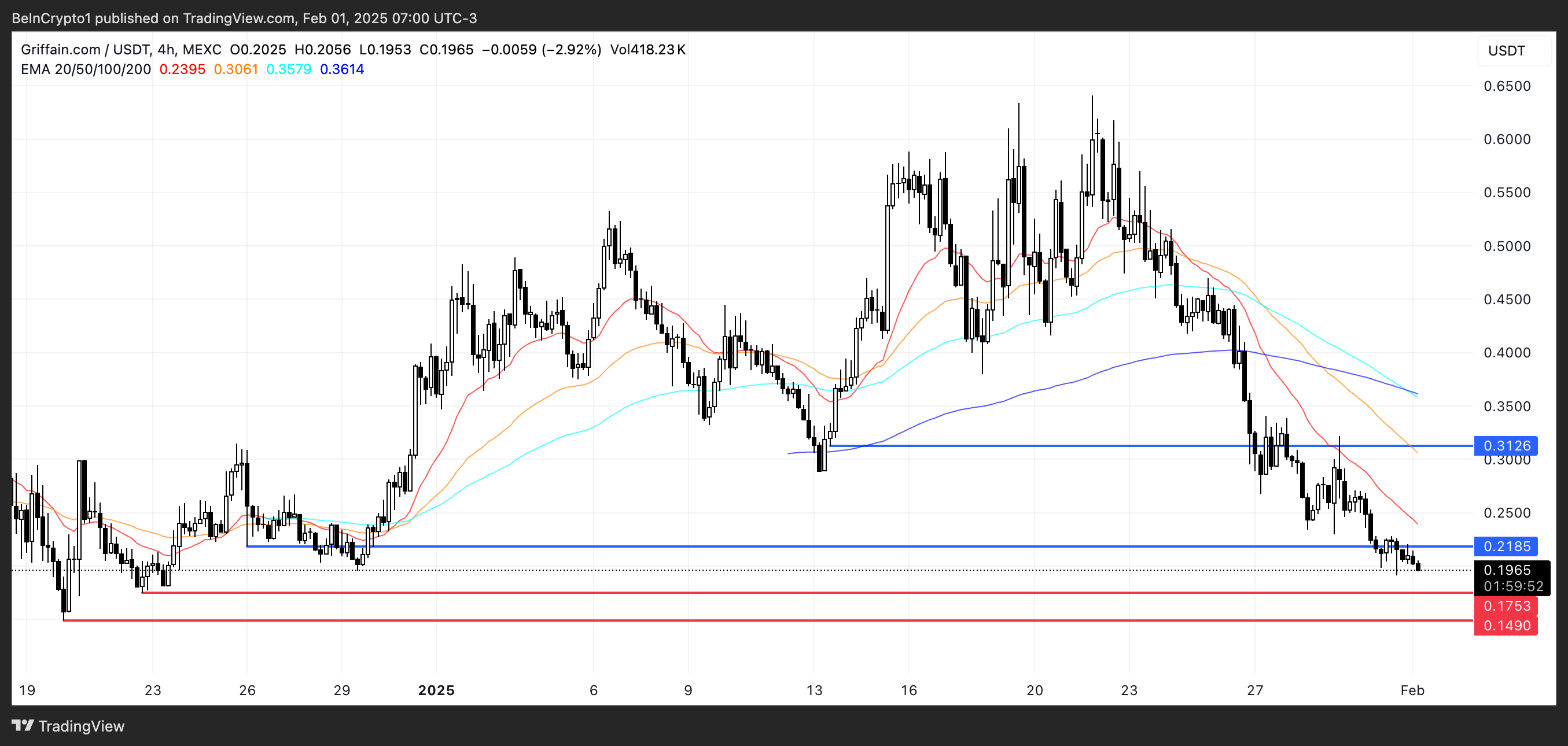Если интерес к крипто ИИ-агентам вернется, GRIFFAIN может восстановиться над уровнями сопротивления $0,218 и $0,31, с возможным ростом до $0,4 или $0,45.