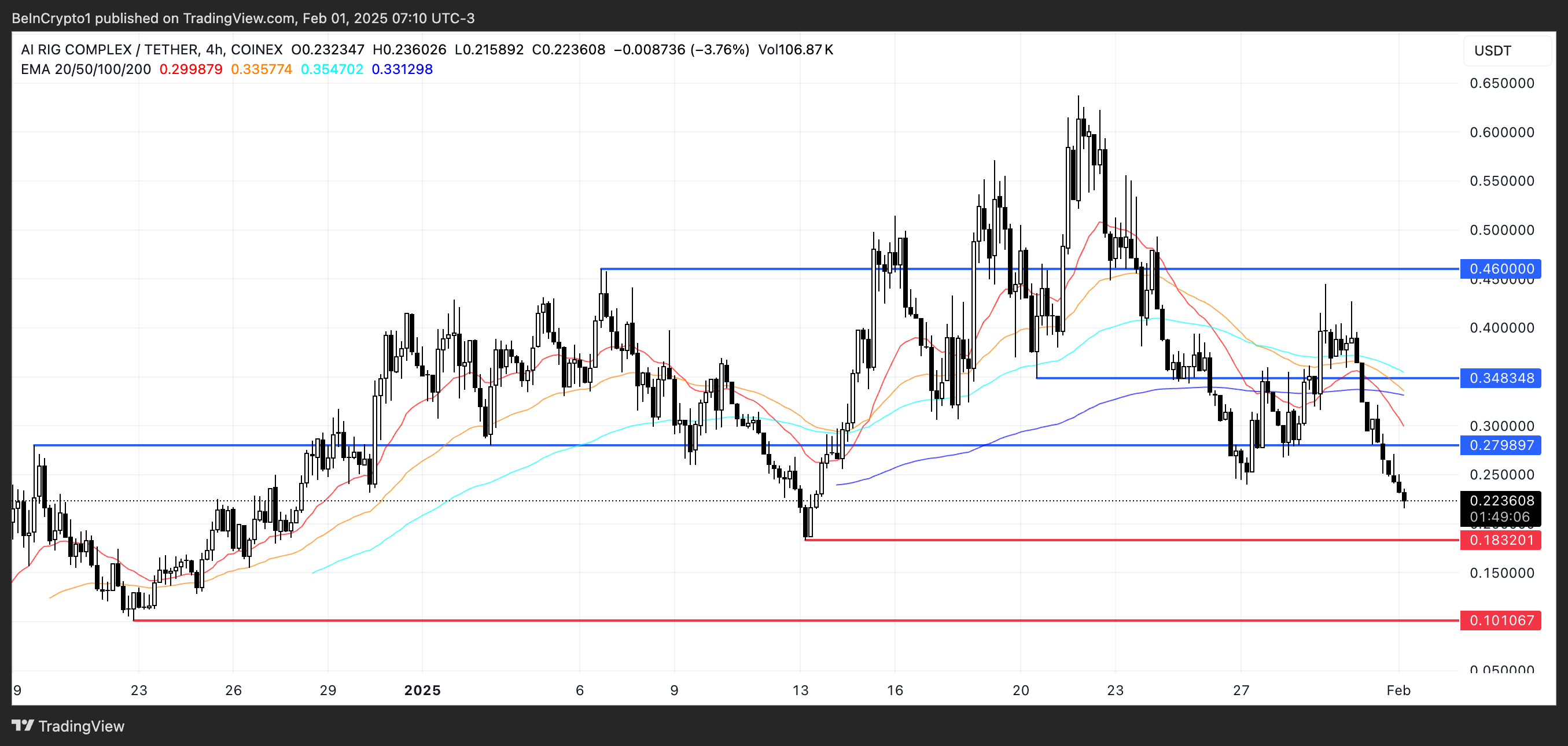 SponsoredЭкспоненциальные скользящие средние на графиках ARC сформировали «крест смерти», что привело к падению цены на 23% всего за 24 часа. Если медвежий тренд продолжится, ARC может протестировать уровни поддержки $0,18 и $0,10.