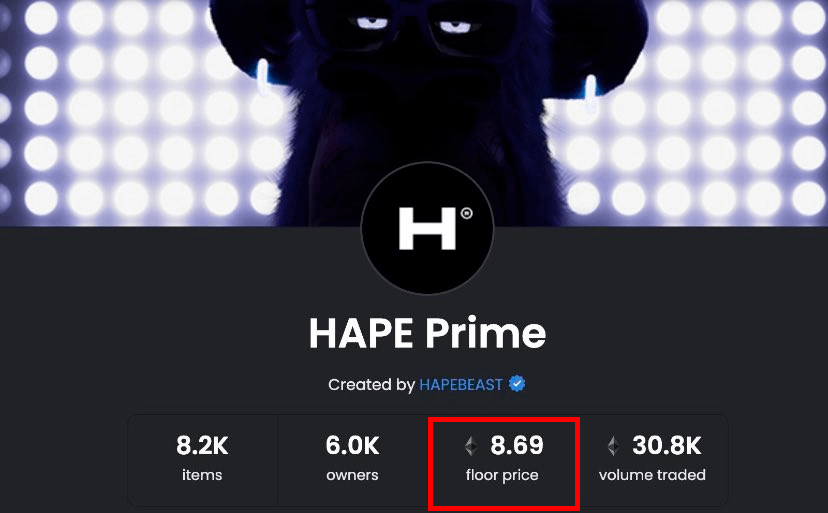 Hape Prime — коллекция невзаимозаменяемых токенов по мотивам «скучающих обезьян» — Bored Ape Yacht Club. В моменте минимальная цена на NFT Hape Prime достигала $30 тыс.